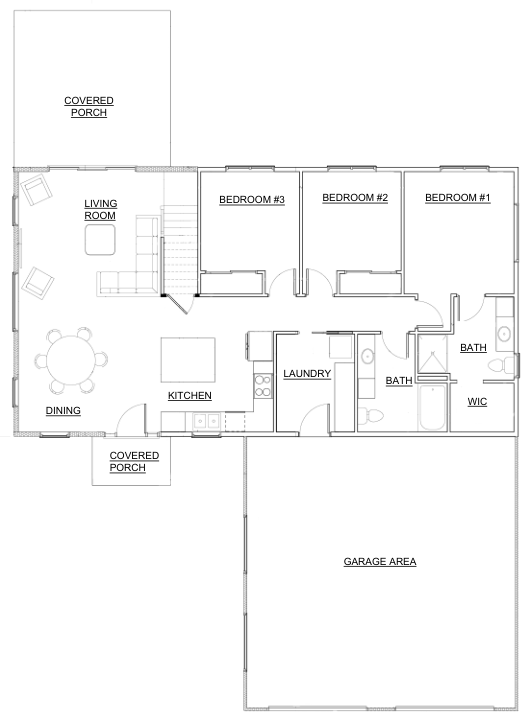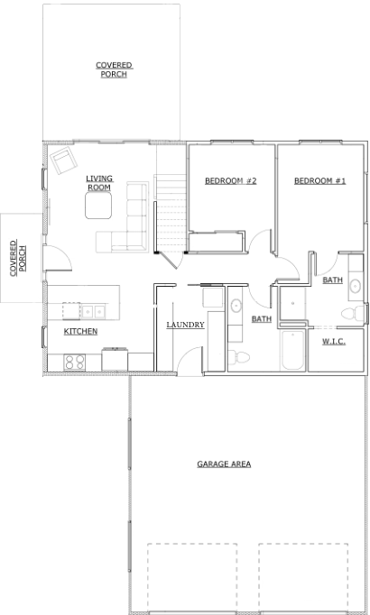 The Birch: 1336 SQFT - 2 bedroom with loft space)— efficient, cozy, and built for simplicity. The Birch cottage model is designed with modern comfort and functionality in mind. It features two well-sized bedrooms, each offering a private retreat with ample closet space. A standout feature of The Birch is its loft, which provides a versatile space that can be tailored to your needs—whether as a home office, a play area, or a cozy reading nook. The heart of the home is the spacious, open-concept kitchen and living area, designed to facilitate easy entertaining and everyday living. The kitchen boasts modern stainless steel appliances, generous counter space, and a layout that seamlessly flows into the living room, creating a welcoming environment for gatherings. The Birch model also includes a two-car garage, providing ample storage and parking space. Overall, The Birch combines practical design with stylish features, making it an ideal choice for your Northwoods cottage. Contact us for details and all options.
